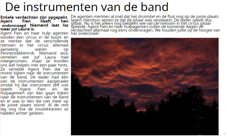 De dader is een muzikant. Om beter te weten hoe muziekkanten denken, gaan wij een muziekkant worden. Wat hebben we daarvoor nodig? Een muziekinstrument, een melodie en een visie op muziek!