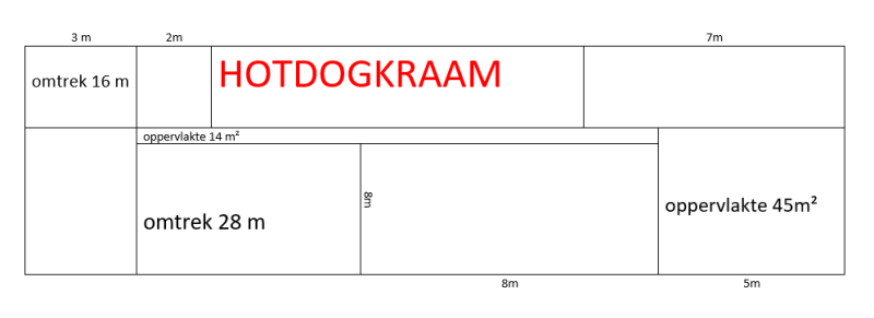 Bereken de oppervlakte die jij nog over hebt voor de hotdogkraam.